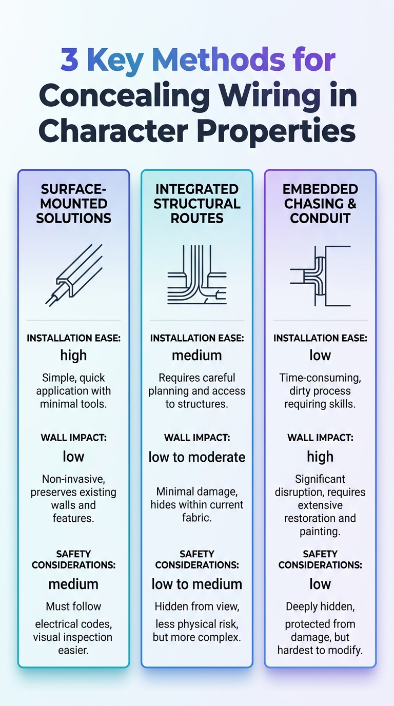 The top methods for concealing modern wiring in character properties are not a one-size-fits-all list. Every period building presents its own specific combination of materials, features, and constraints, and the right approach depends on an honest assessment of what the building will and will not allow.