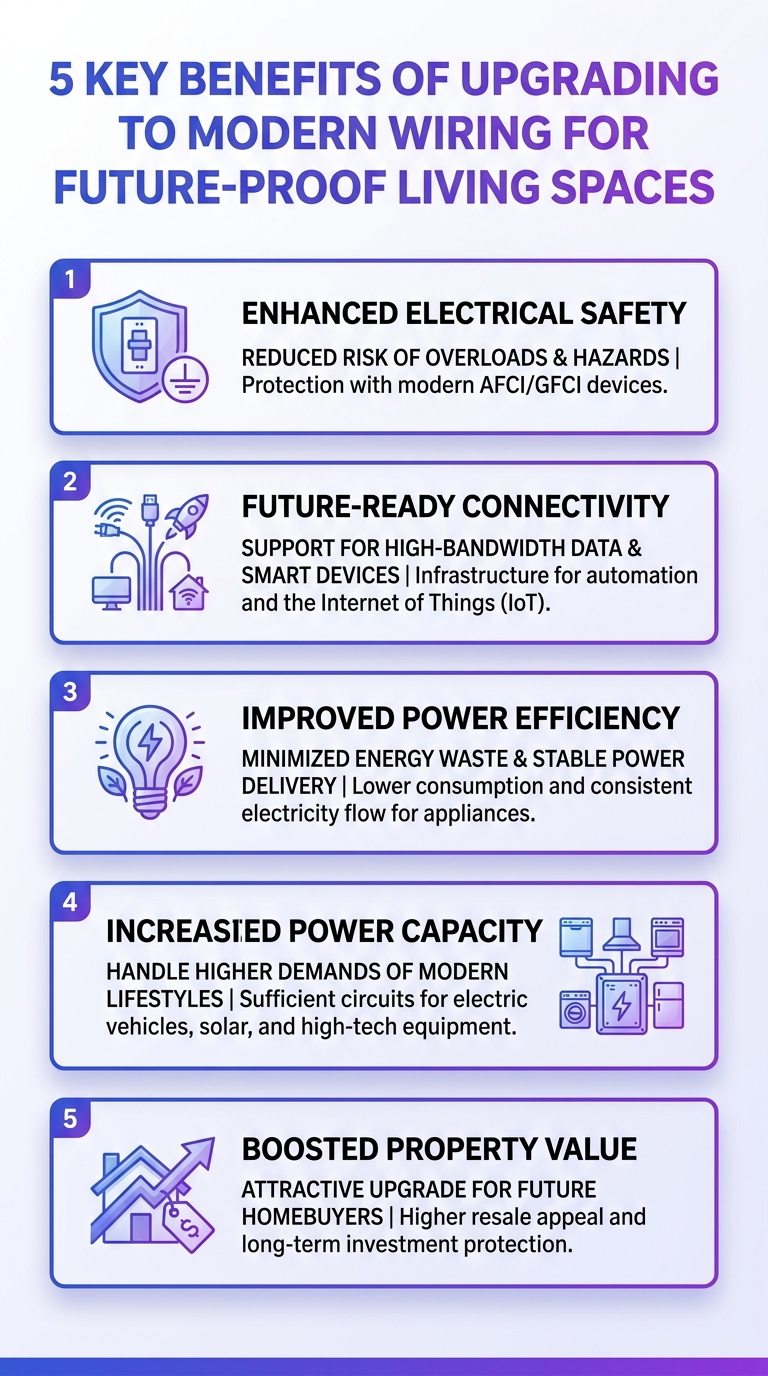 Infographic: 5 benefits of upgrading to modern wiring for Future-Proof Living Spaces.